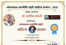 ओमप्रकाश वाल्मीकि स्मृति साहित्य सम्मान के लिए डॉ. कार्तिक चौधरी...